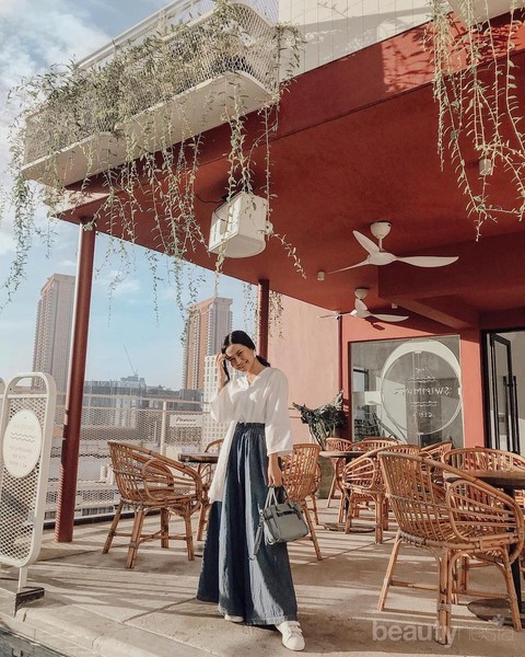 Foto: https://www.instagram.com/hangginiSecara visual, baju Hanbok khas Korea Selatan terlihat sangat ribet dan berat saat dipakai. Tapi, dunia fashion mengolahnya menjadi lebih fleksibel and wearable. Seperti yang dipakai artis sekaligus penyanyi ini. Sepintas, setelan outfitnya sangat mirip Hanbok Korea Selatan. Namun, saat diperhatikan lebih teliti, artis cantik Hanggini hanya menggunakan tie blouse yang dikombinasi rok jeans panjang dan longgar. Terlihat lebih sporty dengan sepatu kets putih.