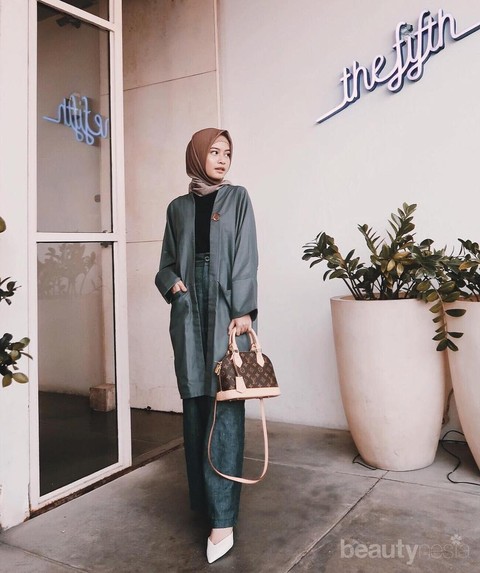 Foto: https://www.instagram.com/hangginiKhusus para hijabers, wajib banget nyontek outfit ala wanita 19 tahun itu. Dia menggunakan setelan outer lengan panjang dan celana panjang one set berwarna denim. Ditambah dengan hijab simple turtle neck dan sepatu stiletto. Artis remaja ini terlihat sangat chic dan santun.