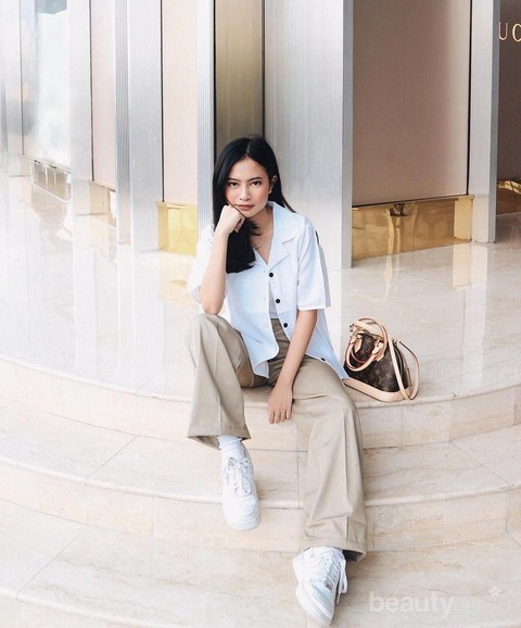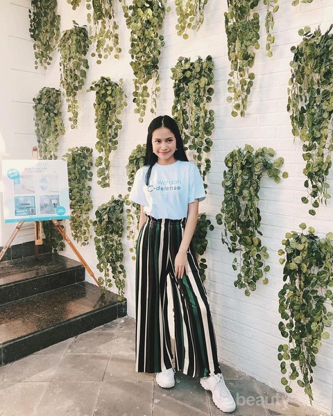 Foto: https://www.instagram.com/hangginiPemain sinetron Tukang Bubur Naik Haji The Series ini tampil casual menggunakan t-shirt warna biru telur asin yang dipadukan celana kulot bermotif stripe. Tak ketinggalan white sneakers kekinian model dad sneakers ini. Outfit Hanggini kali ini terlihat sangat unik karena keberaniannya bermain tabrak warna. Tapi finish looknya oke banget ya ladies.