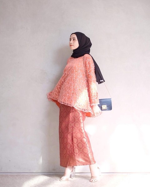 Kamu lebih suka mengenakan rok lilit pendek? Mungkin cara memakai rok lilit pendek yang satu ini bisa kamu tiru. Pilih rok lilit pendek dengan motif kecil untuk memberi kesan ramping pada bawahan kamu, lalu pilihlah kebaya yang motif besar agar terlihat proposional. Jangan lupa sematkan rok lilit dengan ring agar memberi kesan lebih anggun.