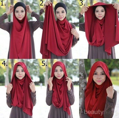 Gaya hijab modern yang satu ini paling mudah untuk kamu coba lho. Hanya perlu hijab square dan ciput. Yuk ikuti langkah-langkah berikut:
