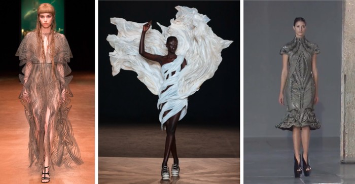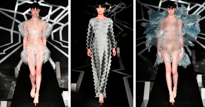 Salah satu titik balik terbesar dalam dunia mode adalah ketika Iris van Herpen memperkenalkan gaun 3D-printed pertamanya pada Amsterdam Fashion Week 2010, yang mengubah cara orang melihat couture. Atasan Crystallization yang terinspirasi oleh struktur cangkang dan dicetak 3D dari poliamida putih menjadi yang terviral di zamannya.