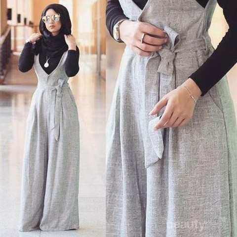 Terakhir, tampilan overall dengan model celana kulot yang melebar dan pemilihan material bahan premium akan membuat gaya fashion hijab dengan overall kamu lebih elegan dan eksklusif. Tidak heran gaya yang satu ini cocok juga jika digunakan untuk menghadiri acara semi formal hingga formal. Kamu hanya perlu menambahkan sedikit aksesoris dan menggunakan heels untuk tampilan yang lebih rapi.