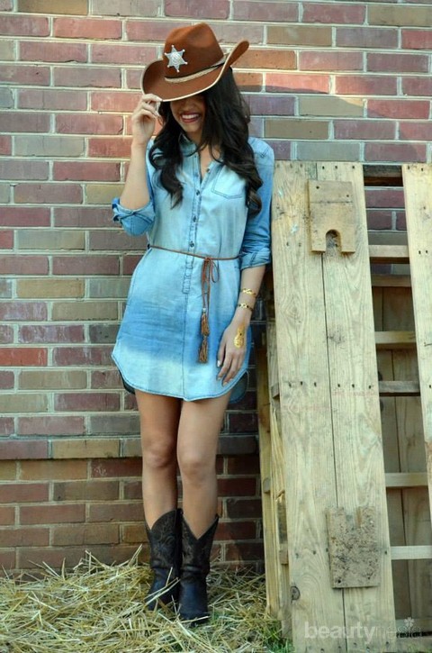 Terkadang jika membayangkan denim on denim, penampilan ala cowboy bakal muncul dipikiran kamu. Mungkin gaya tersebut bisa terlihat keren, tapi tidak disarankan untuk menjadi inspirasi kamu ya, Beautynesian. Apalagi jika kamu menggunakan denim on denim yang kemudian dipadukan dengan topi dan sepatu boots ala cowboy. Itu tidak akan membuatmu tampil fashionable dengan denim on denim lho!