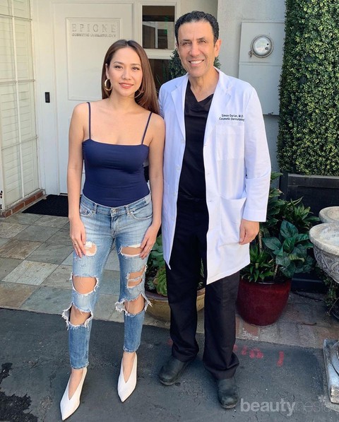 Foto: https://www.instagram.com/bclsinclair/Saat mengunjungi klinik kecantikan di California, Bunga Citra Lestari juga tampil simpel namun stylish dengan memadukan ripped jeans dan atasan tank top berwarna navy. Penampilannya kemudian semakin kece dengan pointed toe heels berwarna putih dan polesan makeup natural.