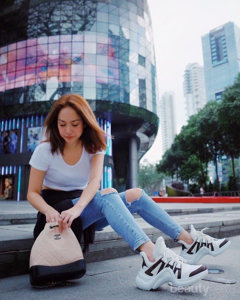 Deretan Gaya Kasual Bunga Citra Lestari dengan Celana Jeans Robek