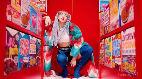 Terakhir, Lisa dan Jennie BLACKPINK member yang tampil kece banget di scene ini. Lisa memakai bralette warna kuning dengan jaket kulit dipadu mini skirt putih berumbai. Yang unik adalah rambut pirangnya.