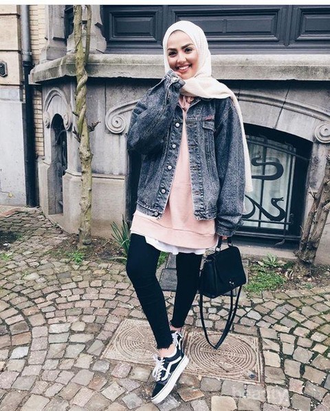 Kamu bisa mencoba style jaket denim dengan outfit celana atau rok sesuai selera kamu. Yang pasti, tampilan ini akan membuat style kasual saat hangout dan traveling menjadi lebih fashionable. Tips hijab ini harus kamu ikuti!