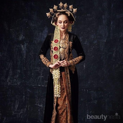 Foto: https://instagram.com/victoria_makeupatelierWah, di foto ini Luna Maya terlihat begitu anggun dan sangat elegan ya ladies. Pada foto ini Luna Maya mengenakan baju pengantin Solo Basahan Keprabon berwarna hitam, yang dipadukan dengan bawahan berupa kain batik. Seperti pengantin putri, Luna Maya juga terlihat mengenakan sanggul model gelung tekuk berhiaskan roncean bunga melati lengkap dengan pemakaian cunduk mentul berwarna emas. Elegan, anggun, dan feminim, dalam satu paket Luna Maya.
