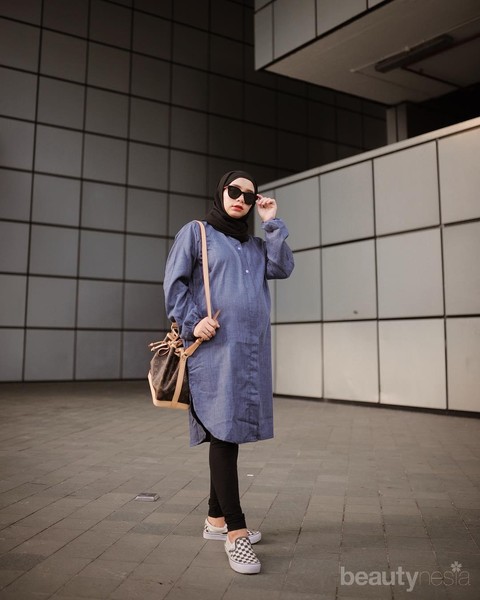 Selebgram hits bernama asli Erlinda tengah mengandung anak pertamanya. Terlihat dari perutnya yang kian membuncit. Joyagh berpenampilan hypebeast dengan mengenakan tunik denim dan celaan panjang hitam. Ditambah slip on Vans bermotif catur dan hijab segiempat serta sunglasses hitam yang stylish.