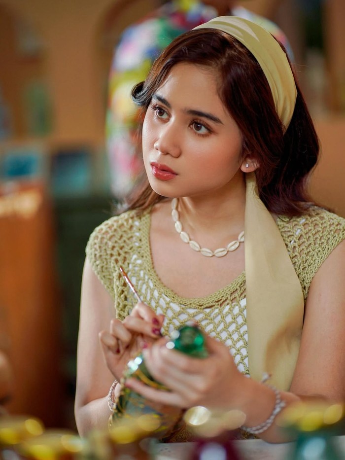 Tissa Biani di film 'Dilanjutkan Salah Disudahi Perih' (2025). Berperan sebagai seorang seniman, ia mengenakan atasan rajut. Penggunaan rajutan di film-film modern menguatkan tren lace dan crochet di kalangan Gen Z/ Foto: instagram.com/tissabiani