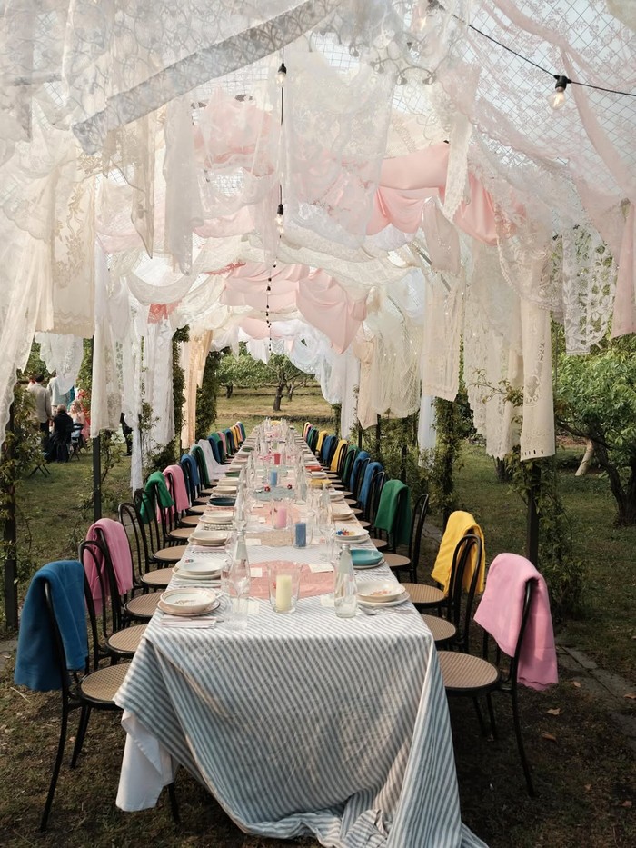 Dekorasi pernikahan rancangan Anna Szczesny Studio menggunakan lembaran-lembaran kain lace, menampilkan nuansa intimate sekaligus semangat gaya hidup slow fashion. Studio yang sama juga menangani dekor butik Magda Butrym/ Foto: instagram.com/anna_szczesny