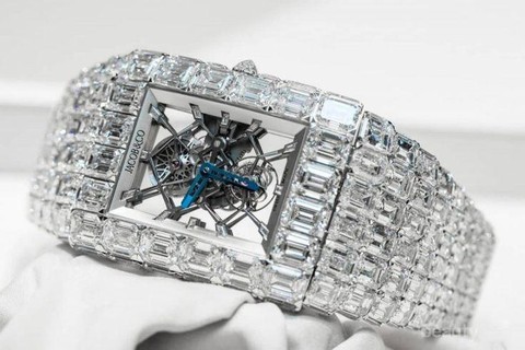Foto: IstimewaKonsep jam ini adalah bertabur mutiara. Hal ini membuatnya berbeda karena jam tangan ini dianggap lebih mirip perhiasan. Dengan jarum penunjuk berwarna biru metalik dan sebagian mesin di dalamnya, jam tangan ini dilengkapi permata emerald-cut sejumlah 260 karat dan dihargai 243 Miliar Rupiah.