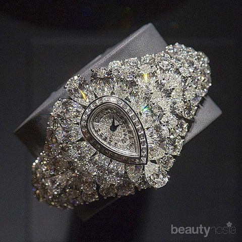 Foto: IstimewaJam tangan ini bertahtakan berlian putih senilai 152 karat serta berlian berbentuk pir 38 karat. Material itu pun disusun dari material terbaik dan termewah dan membuat harganya sangat tinggi. Uniknya lagi pada bagian tengahnya bisa dilepas dan digunakan sebagai cincin. Melihat harganya saja sudah bikin sesak napas Beautynesia, kamu bisa membelinya seharga 532 Miliar Rupiah.