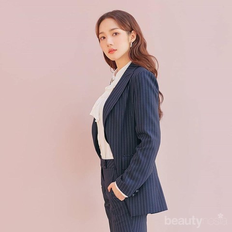 Tak hanya di Indonesia, setelah jas dan celana untuk wanita ini juga disukai oleh artis Korea yang satu ini. Inspirasi fashion Park Minyoung ini cocok buat kamu yang ingin tampil formal dan fashionable saat ke kantor. Kali ini Park Minyoung ini adalah memakai kemeja panjang putih dan dilengkapi dengan setelah jas biru dengan motif garis-garis putih. Jangan lupa ya, lengkapi penampilanmu dengan flat shoes atau high heels yang senada dengan busanamu.