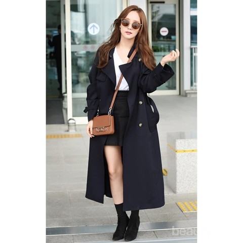 Memang blouse putih sangat mudah dipadu-padankan dengan bawahan lain yang beragam. Nah, Park Minyoung kali ini memakai coat panjang berwarna hitam. Outfitnya semakin keren dengan tambahan boots bludru hitam. Bagaimana ladies, bagus bukan?