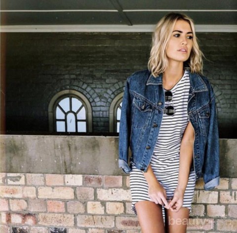 Baju garis-garis juga tidak kalah menariknya untuk kamu padukan dengan jaket jeans. Kamu bisa memilih kaos garis-garis atau dress simpel garis-garis seperti pada foto ini. Agar gaya kasual kamu semakin maksimal, kamu bisa menggunakan sneakers kesukaanmu. Ini merupakan salah satu gaya yang cocok banget kamu gunakan sehar-hari atau untuk pergi jalan-jalan barena teman. Meskipun simpel, tapi akan terlihat menarik tanpa harus melakukan usaha yang berlebihan.