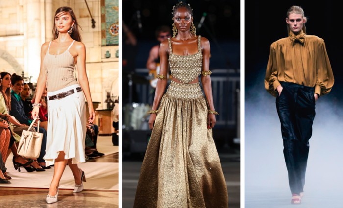 Pleats alias lipit-lipit halus kembali jadi sorotan musim ini. Tidak lagi tampil sebatas manis, pleats hadir dengan interpretasi modern yang lebih dinamis. Tory Burch memamerkan rok midi dengan lipatan asimetris yang ringan, sementara Cucculelli Shaheen menampilkan gaun bernuansa emas yang memadukan kemewahan tekstur dengan konstruksi lipatan yang hidup. Gerakan kain yang berayun tiap langkah memberi kesan chic sekaligus effortless. Pleats ini seakan menegaskan bahwa detail klasik pun bisa tampil serba kontemporer.