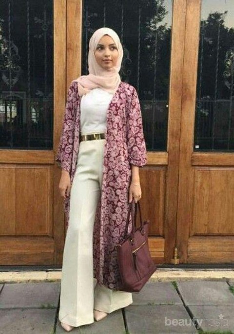 Apabila kamu bosan mengenakan kemeja atuapun blouse dengan motif bunga-bunga, kamu bisa mengenakan outer yang memiliki motif bunga-bunga juga! Dengan mengenakan outer ini, kamu bisa memilih berbagai model dan kamu juga bisa memilih panjang outer itu sesuai dengan kebutuhan kamu. Beautynesian dapat mengenakan hijab dengan warna basic agar tampilan kamu seimbang. Dengan mengenakan outer floral, tampilan kamu fokus pada fashion item ini sehingga fashion item yang lain digunakan sebagai "penyeimbang". Namun, kamu bisa juga kenakan satu fashion item yang juga bermotif floral agar tampilan kamu agak berwarna.