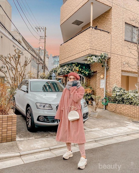 Foto: https://www.instagram.com/nabilazirus/Busana pastel Nabila yang pertama ini secara keseluruhan terlihat sangat soft. Pink warna pastel menjadi pilihan untuk dipadukan dengan baret winter dan celana berwarna senada. Agar terlihat match dan tidak monoton, sepatu sport dan sling bag warna putih menjadi pilihan yang pas untuk melengkapi ootd nya. Tidak lupa, nuansa musim dingin semakin terasa dengan tambahan syal warna abu-abu yang dililitkan ke leher.