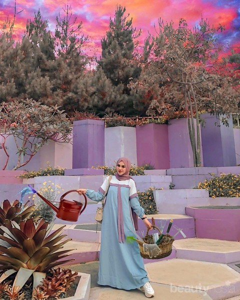 Foto: https://www.instagram.com/nabilazirus/Bagian pergelangan tangan diberi aksen karet yang mengerut. Warna tersebut semakin pas saat memadupadankannya dengan sendal putih dengan sol tinggi. Jangan lupa juga, warna hijab polos yang senada bisa menjadi pelengkap yang sempurna.