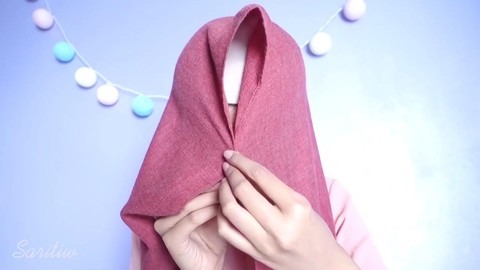 Sebelum memulai kreasi hijab ala youtuber Sari Endah Pratiwi, kamu perlu gunakan ciput agar rambut tidak berantakan. Pakai hijab di atas ciput dan posisikan ujung hijab sehingga sama panjang. Tarik hijab ke bagian depan, lalu pasang peniti atau jarum pentul sekitar 10 cm dari bagian atas sehingga membentuk lipatan.