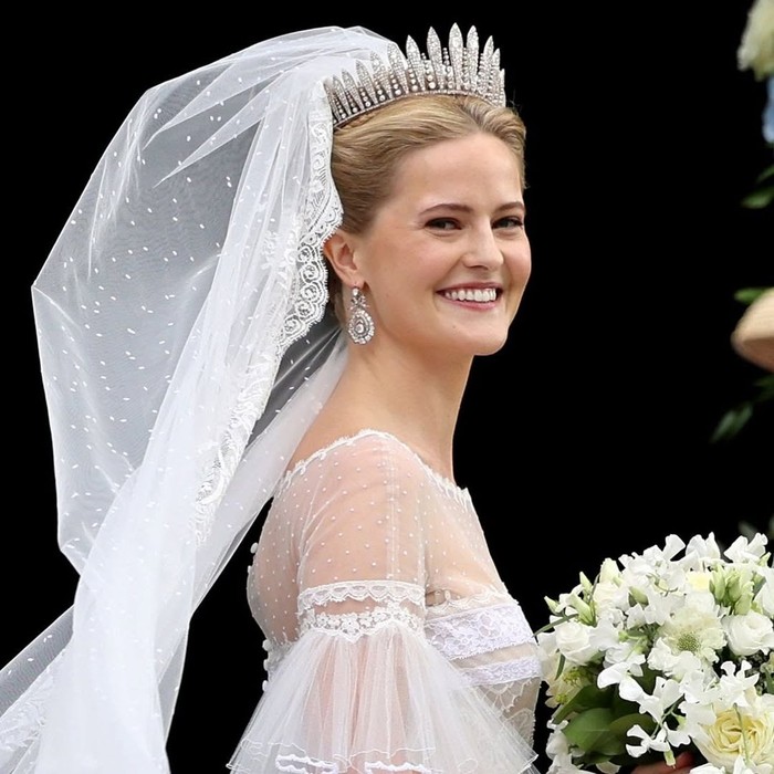 Gaun Pernikahan Putri Marie Caroline dari Liechtenstein, Pakai Habsburg Fringe Tiara Bersejarah