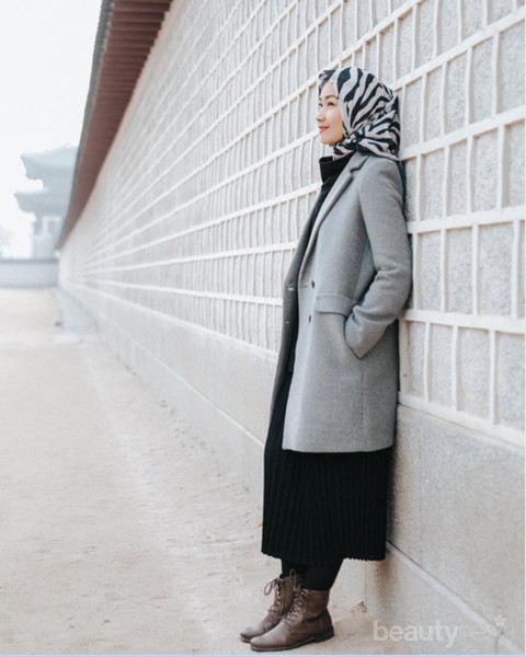 Foto: https://www.instagram.com/arohaliJika dilihat dari kepribadian Alya Rohali yang sederhana dan tidak suka ribet, wajar jika ia lebih memilih gaya hijab yang casual. Hal tersebut ditunjukkan dengan tampilannya kali ini, yaitu memadukan setelan warna hitam dengan coat abu-abu dan jilbab motif animal print Zebra. Gaya hijab Alya Rohali yang casual ini dipermanis dengan boots warna cokelat.