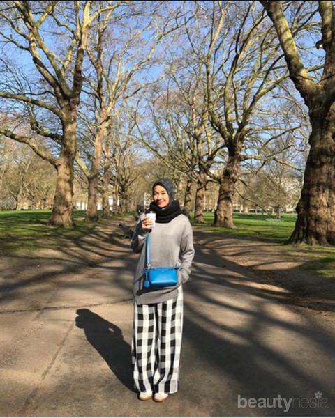 Foto: https://www.instagram.com/arohaliSimple dan tidak suka ribet juga ditunjukkan oleh Alya Rohali dalam gaya hijabnya yang satu ini. Gaya hijab Alya Rohali kali ini terlihat simple dengan memadukan sweater abu-abu dan kulot panjang motif kotak-kotak warna hitam putih.