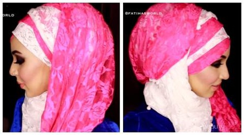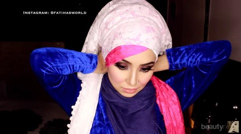 Tarik hijab 2 ke kiri belakang lalu ke atas untuk membuat layer di atas hijab 1 tadi.