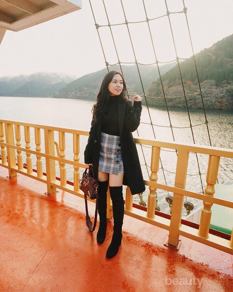 Black never goes wrong!. Seperti yang dilakukan molita mamadukan black outfitnya yang terdiri dari jaket dan baju hitam dengan rok pendek kotak-kotak. Tampilan ini sangat simpel namun dapat membuat ladies menjadi lebih muda. Padukan dengan sepatu warna hitam juga ya, kamu bisa menggunakan heels, boots atau ankle boots yang sedang kekinian.