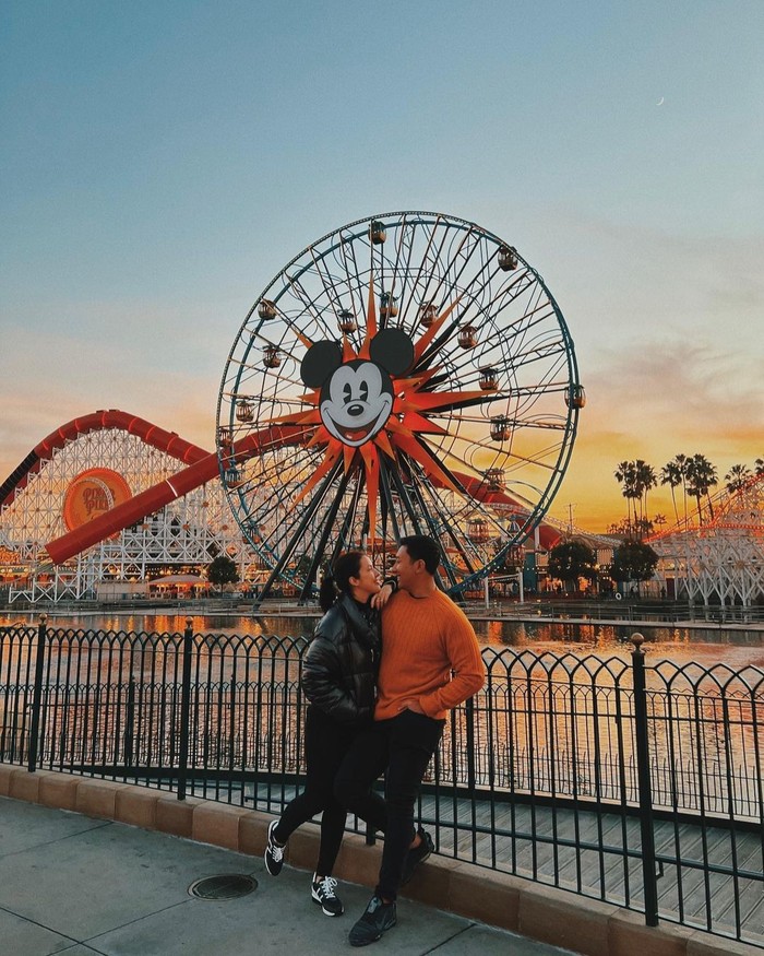 Pasangan ini banyak terlihat kencan romantis di negara-negara empat musim. Di salah satu musim panas, keduanya kompak memilih tampilan kasual dengan outfit pendek nuansa biru denim yang serasi menyatu dengan warna langit dan laut.Â