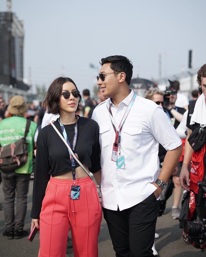 Saat di acara balap, Patricia Schuldtz sering tampil sporty pakai crop top basic dan wide leg pants pastel. Sementara Darma setia dengan outfit serba hitam atau putih yang simpel.