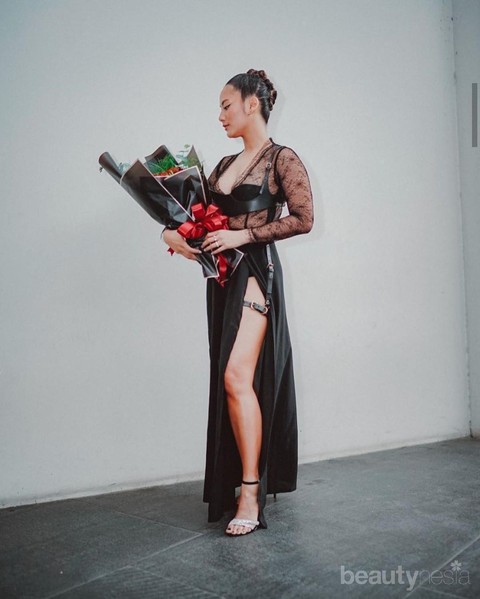 Foto: https://www.instagram.com/tarabasro/Selain itu, Tara juga melengkapi gaunnya dengan harness belt hitam berbahan kulit di bagian dada dan paha, sehingga membuat penampilannya semakin seksi, berani, serta edgy.