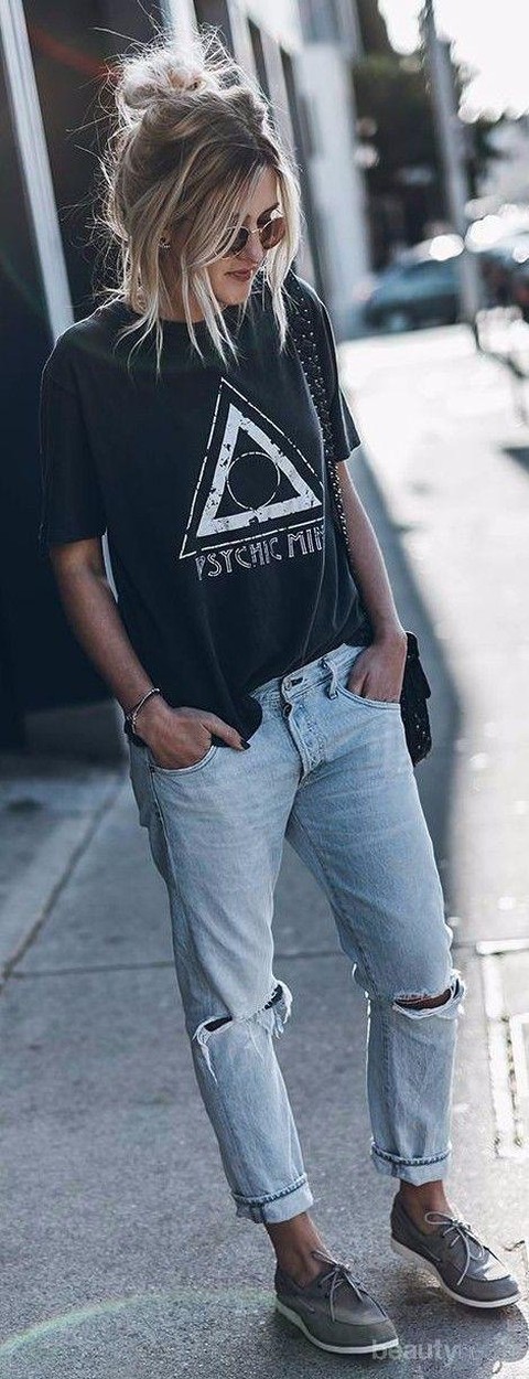 Foto: https://id.pinterest.com/pin/511440101427398229/Printed Tee with Ripped Jeans