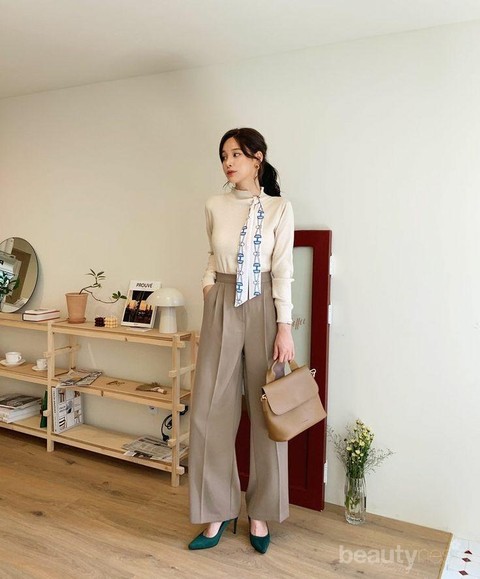 Jika kamu ingin terlihat lebih fashionable dengan tampilan yang classy, kamu bisa menambahkan scarf pada padu padan high waist kulot dan atasan favorit kamu. Pilih atasan dan kulot dengan tingkatan warna yang sama untuk tampilan yang lebih berkelas.