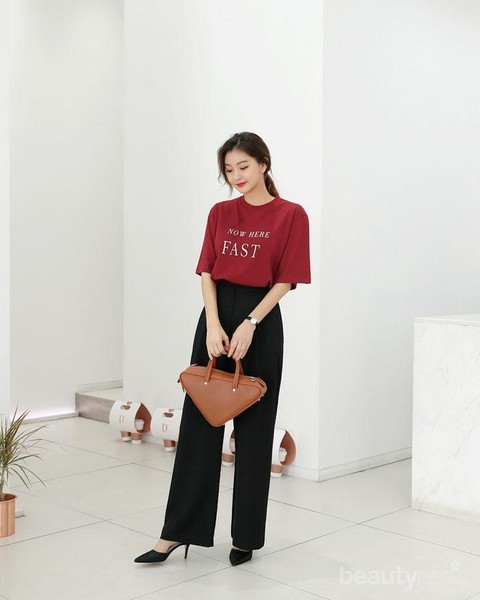 Suka bergaya casual dan nyaman dengan t-shirt? Kulot juga terlihat manis jika kamu padukan dengan kaos oblong sekalipun. Bahkan bisa tetap terlihat elegan jika kamu menggunakan high heels senada dengan warna kulot yang kamu kenakan, Ladies.