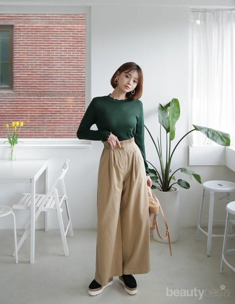 Kamu juga bisa memadukannya dengan long sleeve top untuk gaya yang lebih stand out. Jangan lupa untuk selalu memilih kulot dengan warna-warna netral agar mudah untuk dipadukan.