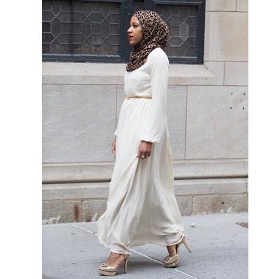 Padu Padan Hijab Motif Leopard dengan Dress Putih