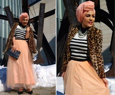 Menurut Dania Badawi, seorang fashion hijab asal Texas, Amerika Serikat, mengatakan bahwa padu padan outfit bermotif leopard akan terlihat lebih menarik jika dipadupadankan dengan outfit berwarna hijau zamrud. Seperti outfit yang dikenakan Dania kali ini. Kulot dengan warna zamrud hijau memiliki warna yang begitu kontras tatkala dipadupadankan dengan outfit bermotif leopard. Dengan sentuhan tas berwarna senada memberi kesan elegan. So, kamu nggak perlu lagi khawatir buat mengenakan motif leopard, Ladies! Ide ala Dania ini bisa kamu contek dan kamu coba!