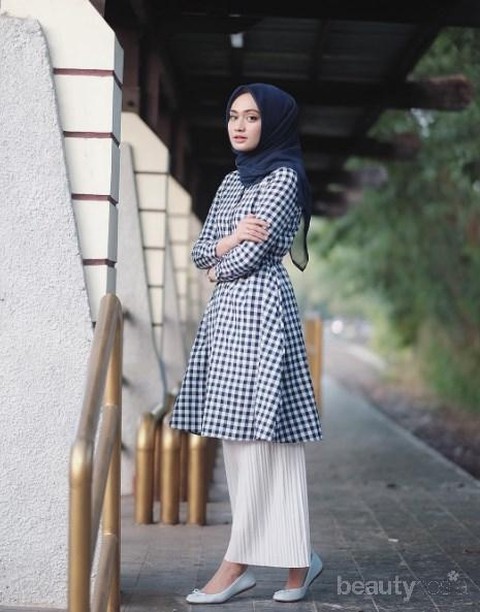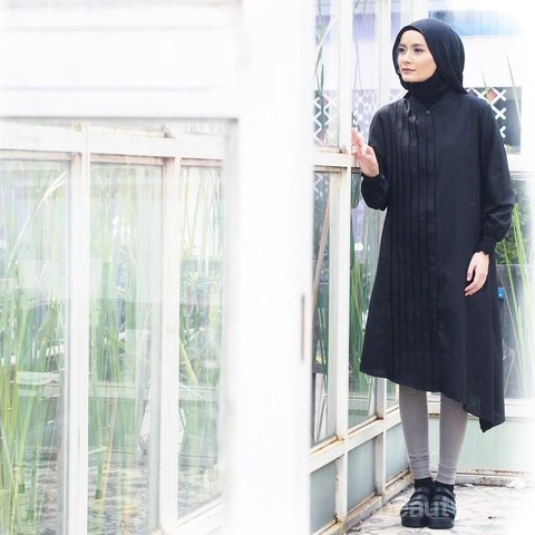 fashionable. Jangan lupa untuk memadu padankan busana satu ini dengan leging berwarna abu-abu. Untuk model hijab-nya sendiri, jangan lupa untuk sempurnakan tampilan kamu dengan mengunakan