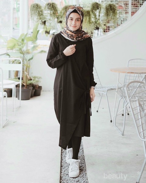 Blouse hitam berpotongan asimetris ini juga cocok jika dipadankan dengan legging hitam yang kamu miliki. Agar penampilanmu terlihat lebih chic, jangan lupa kenakan hijab bermotif yang kamu miliki dan juga sneaker kesayangan yang nyaman dikenakan.