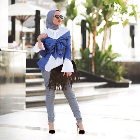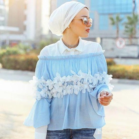 Style hijab dengan off shoulder top selanjutnya yang bisa kamu tiru adalah office look yang satu ini. Untuk mendapatkan gaya hijab casual chic, mudah banget. Tinggal memadukan sebuah skinny jeans, white basic shirt, hijab, dan off shoulder top dalam satu look. Namun, jika kamu ingin terkesan unik dan berbeda dari yang lain, kamu bisa memilih ribbon off shoulder top seperti pada look ini. Ribbon off shoulder top yang kamu pakai akan membuatmu kece dan stylish!