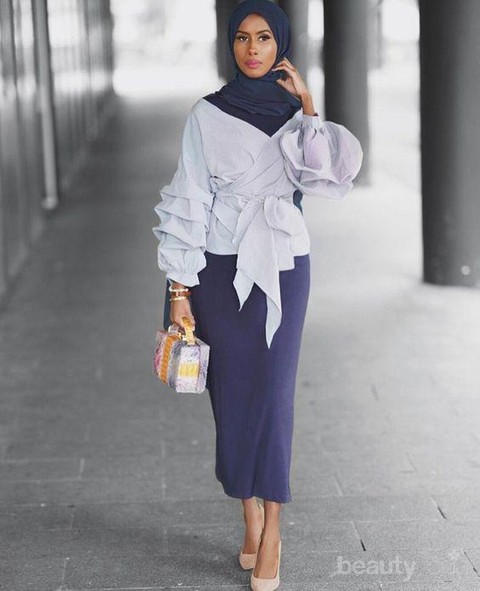 Bosan dengan celana dan pingin terkesan feminin? Just wear a skirt then! Agar tubuh terkesan tinggi dan langsing, serta penampilan lebih sleek, rok span bisa jadi pilihan tepat. Kenakan bersama off shoulder top yang memiliki detail layer atau ruffle yang akan membuat penampilanmu feminin. Kenakan inner agar bagian pundak tertutup rapat serta hijab simple tanpa motif. Kamu bakal tampil cantik banget. Untuk melengkapi style yang udah cakep ini, jangan lupa kenakan heels cantik dan clutch serta aksesori seperti kalung untuk mengisi bagian dada yang terkesan kosong. Style hijab ini bisa kamu pakai untuk menghadiri acara-acara formal.