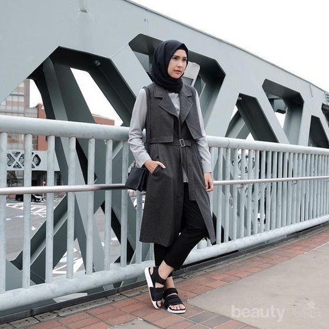 Selanjutnya, padanan style hijab dengan outer tanpa lengan yang satu ini juga bisa jadi pilihan gaya fashion saat kuliah atau traveling. Dijamin dengan seluruh outfit monochrome ini kamu akan terlihat stunning dalam foto OOTD kamu. Jangan lupa untuk memerhatikan tiap detail outfit, hingga aksesoris semuanya harus bernuansa monochrome.