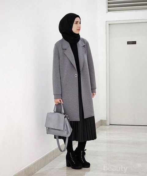 Terakhir, padu padan tampilan hijab saat ke kantor dengan style monochrome ala Rani Hatta memang sangat stunning. Padu padan coat, rok plisket, legging wudhu, dan combat boots hitam menciptakan tampilan kantor dengan gaya smart casual yang beda dari biasanya. Modis banget, kan?