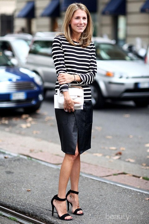 Memadukan baju garis-garis dengan rok merupakan salah satu style kekinian yang bisa menjadi inspirasimu. Namun, pastikan juga baju yang kamu gunakan memiliki model yang sesuai dengan tubuhmu. Jika kamu cenderung memiliki tubuh yang agak gemuk, hindarilah menggunakan rok yang terlalu panjang. Kamu bisa memadukan baju garis-garis kamu dengan rok dibawah lutut. Pasti gaya kasual kamu akan terlihat lebih menarik deh.