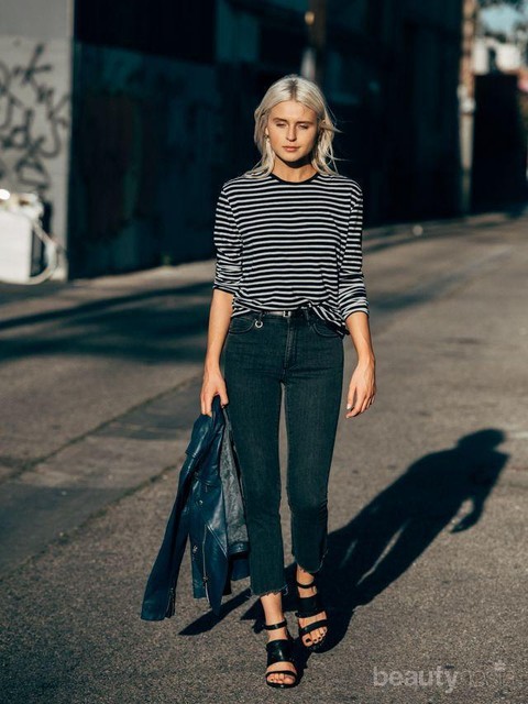 Inspirasi terakhir agar baju garis-garis yang kamu gunakan tidak membuatmu terlihat gemuk adalah dengan memadukannya menggunakan outer. Jika kamu menggunakan dress dengan motif garis-garis, kamu bisa memadukannya dengan jaket denim agar penampilan kasual kamu terlihat lebih stylish dan menarik. Gaya seperti ini bakal cocok untuk kamu gunakan saat beraktivitas sehari-hari lho.