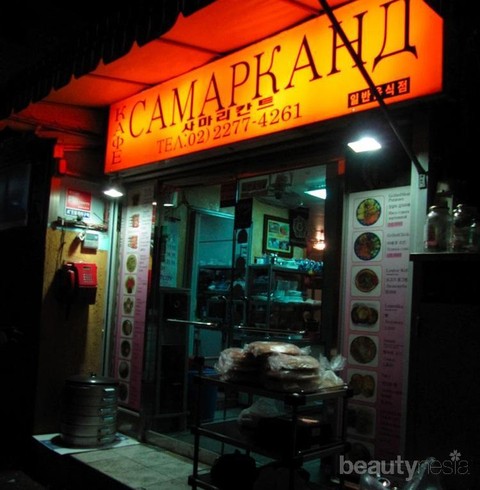 Camapkahd (baca: Samarkand) merupakan salah satu restoran khas Uzbekistan yang terletak di Busan. Menu favorit yang disajikan adalah sate daging sapi yang disebut shashlik. Biasanya Shashlik disajijan dengan roti tradisional lepyoshka dan salad wortel. Kalau Beautynesian penasaran, kamu bisa menggunakan Subway Jalur 1 ke Stasiun Incheon Dong Exit 4, kemudian dilanjutkan dengan 15 menit berjalan kaki.