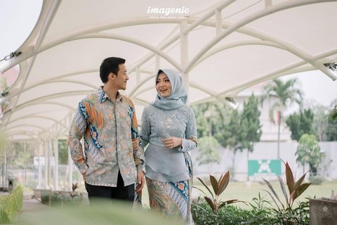 Apabila kamu dan pasangan menyukai tampilan couple yang lebih simpel dan sederhana, pilihan kebaya basic dan batik ini dapat menjadi pilihan yang tepat untuk kalian. Warna simpel seperti biru yang dipadukan warna netral, baik itu putih, hitam, atau cream, akan menciptakan nuansa lamaran yang lebih sederhana, tetapi manis. Setuju, kan?